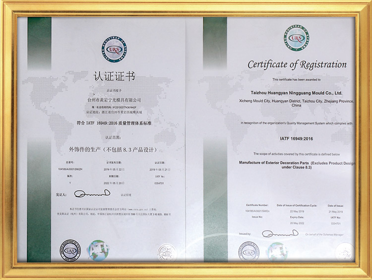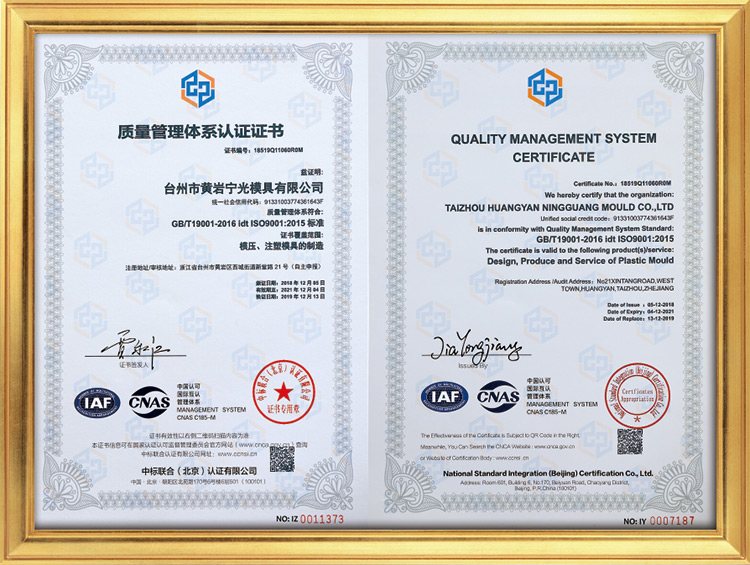 寧光具有豐富的設計經驗和模具制造經驗,有嚴格的質量控制系統和高效率的工作團隊,已通過ISO9001:2000質量管理體系,在科技研發項目管理、人才引進培養、質量控制等方面建立了完善的管理制度,擁有一批有著豐富經驗的工程技術人才。